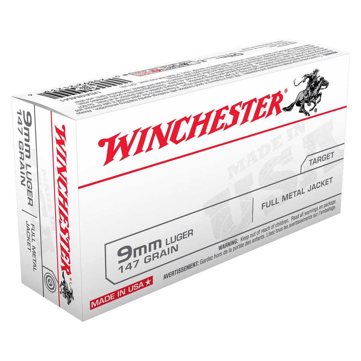 Winchester Ammo USA 9mm Luger 147gr FMJFN Handgun Ammo – 50 Rounds – “USA White Box” stands for consistent performance and outstanding value, offering high-quality ammunition to suit a wide range of hunter’s and shooter’s needs.