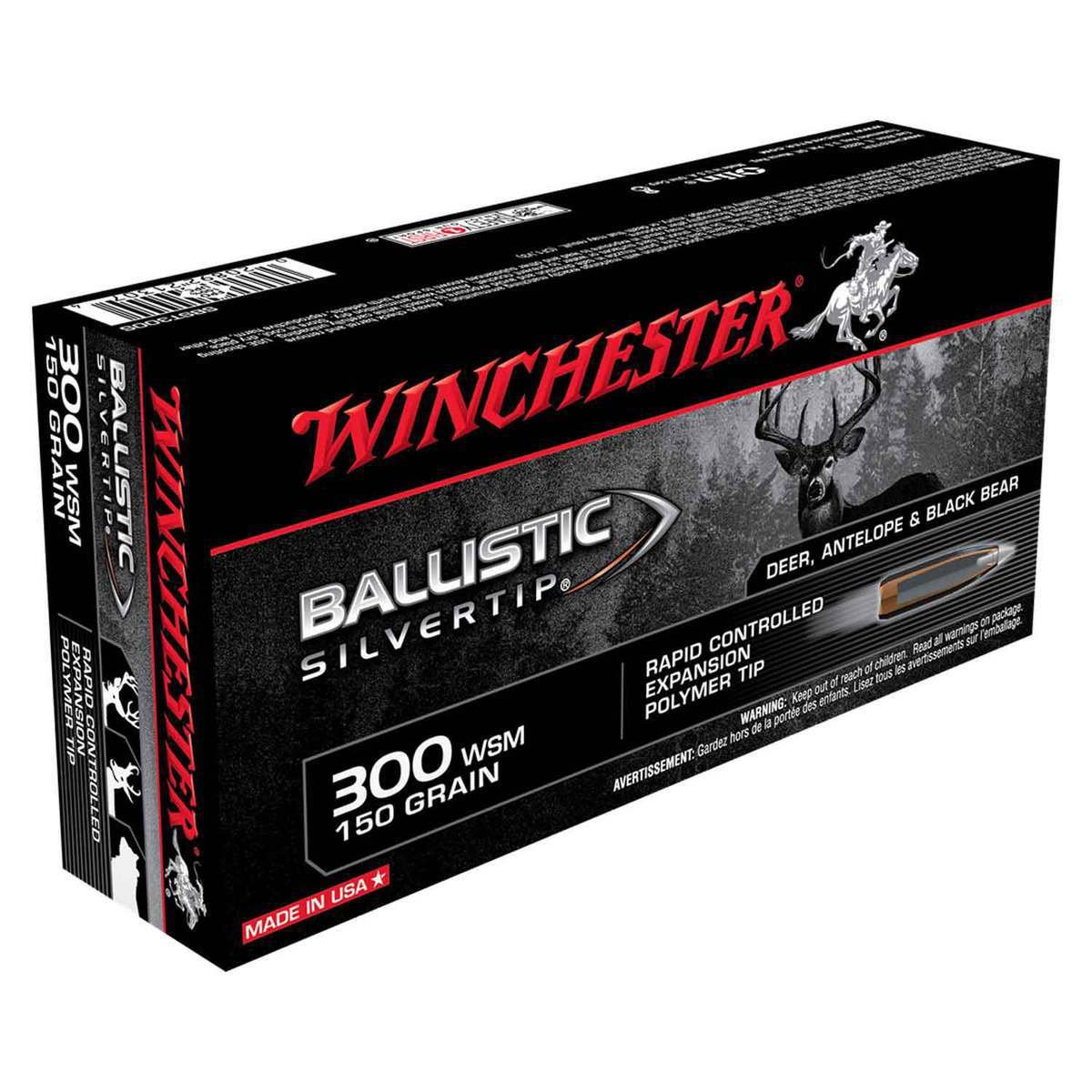 Winchester Ballistic Silvertip 300 WSM (Winchester Short Mag) 150gr Ballistic Silvertip Rifle Ammo – 20 Rounds – Ballistic Silvertip ammunition provides hunters proven immediate knock-down. Innovation combined with engineering excellence makes Ballistic Silvertip the choice for those who appreciate the legendary excellence Winchester is known for around the world.