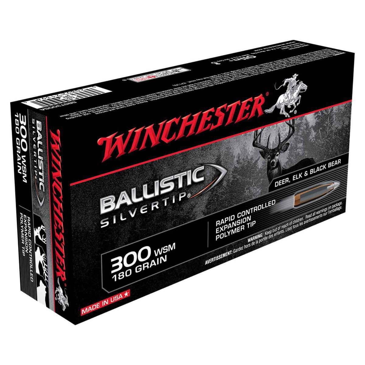 Winchester Ballistic Silvertip 300 WSM (Winchester Short Mag) 180gr Ballistic Silvertip Rifle Ammo – 20 Rounds – Ballistic Silvertip ammunition provides hunters proven immediate knock-down. Innovation combined with engineering excellence makes Ballistic Silvertip the choice for those who appreciate the legendary excellence Winchester is known for around the world.