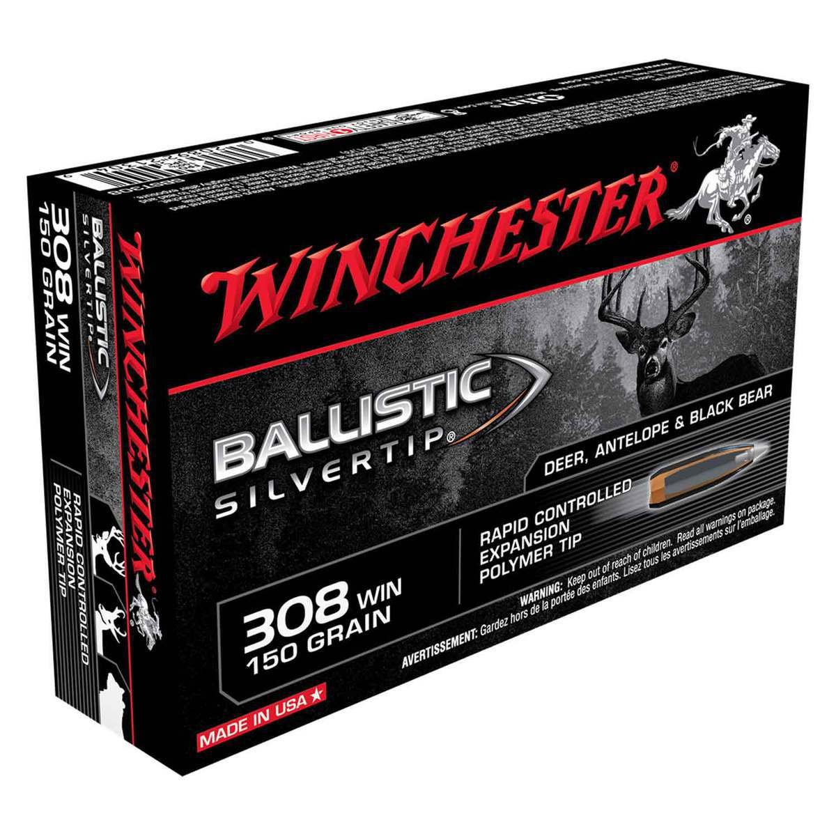 Winchester Ballistic Silvertip 308 Winchester 150gr Ballistic Silvertip Rifle Ammo – 20 Rounds – Ballistic Silvertip ammunition provides hunters proven immediate knock-down. Innovation combined with engineering excellence makes Ballistic Silvertip the choice for those who appreciate the legendary excellence Winchester is known for around the world.