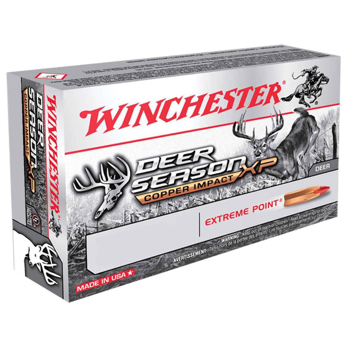 Winchester Deer Season 243 Winchester 85gr Copper Extreme Point Rifle Ammo – 20 Rounds – Deer Season XP Copper Impact ammunition combines our extensive experience into a product engineered specifically for deer hunters. The Copper Extreme Point bullet is a solid copper expanding projectile with an oversized impact diameter. A bigger impact diameter means more trauma, better energy transfer, and larger wound cavities for faster knockdown.