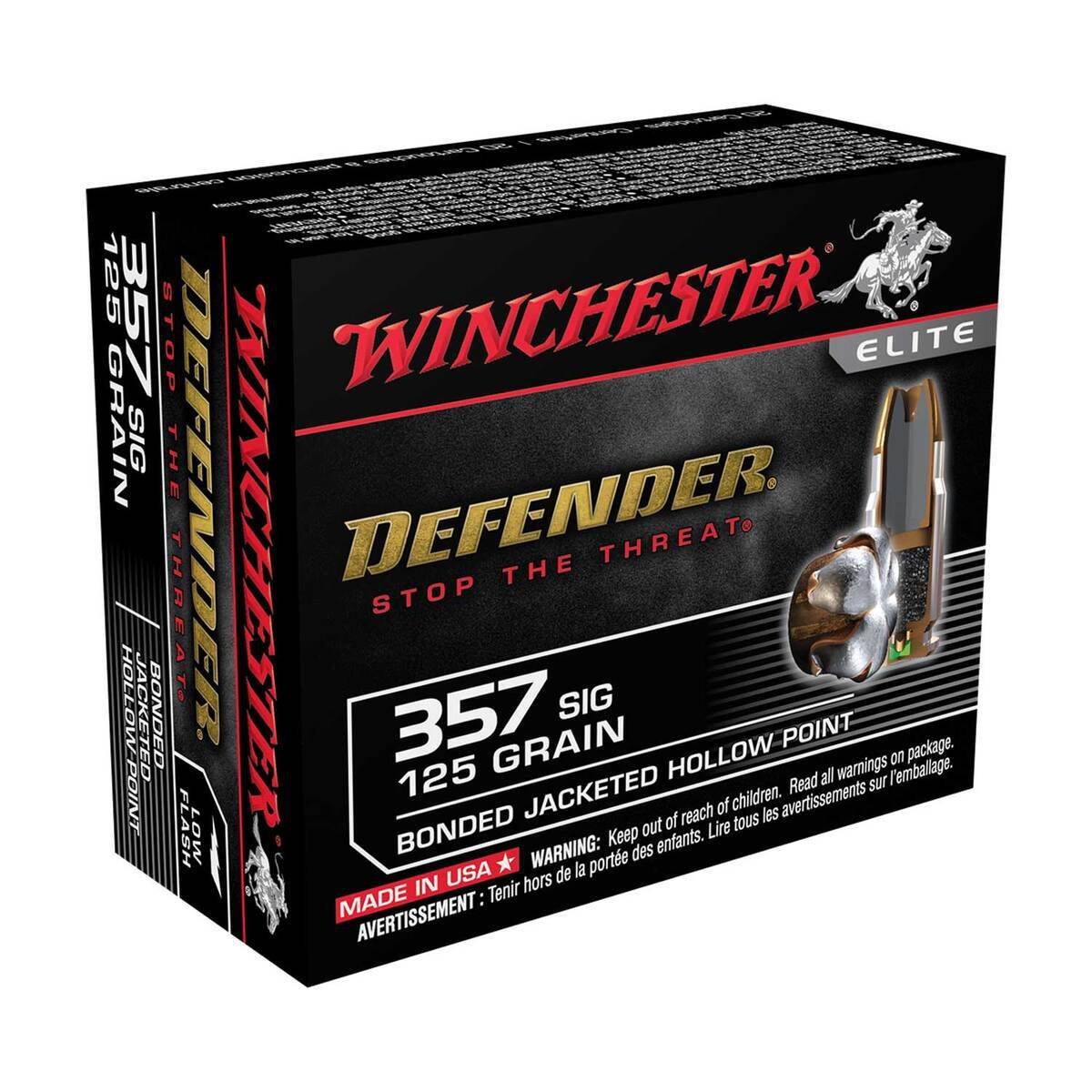 Winchester Defender 357 SIG 125gr BJHP Handgun Ammo – 20 Rounds – Engineered to maximize terminal ballistics as defined by FBI test protocol, PDX1 Defender ammunition provides maximum stopping power for the ultimate in personal defense. Winchester’s innovative bonding process welds the jacket to lead core for improved penetration, 1.5x expansion and the proven performance you rely on when the stakes are high.