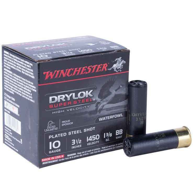 Winchester Drylok Super Steel 10 Gauge Steel Shotshells – Supreme High Velocity Drylok Super Steel Steel 10 gauge shotshells give you the ultimate in water-resistant, high-velocity, knock-down performance in any foul-weather hunting condition