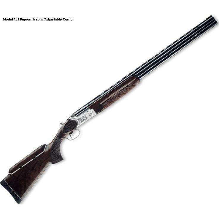 Winchester Model 101 Pigeon Trap Walnut 12 Gauge 2-3/4in Over Under Shotgun -A deluxe trap gun. These deluxe trap guns are ready to dominate the field with sought-after extras straight from the box. A wide 10mm steel runway rib, mid-bead sight and TRUGLO TRU-BEAD interchangeable fiber-optic front sight offer a truer, more technical sight picture. The lightweight barrels are highly polished and feature porting and vented side ribs. An adjustable trigger shoe fine tunes length of pull.