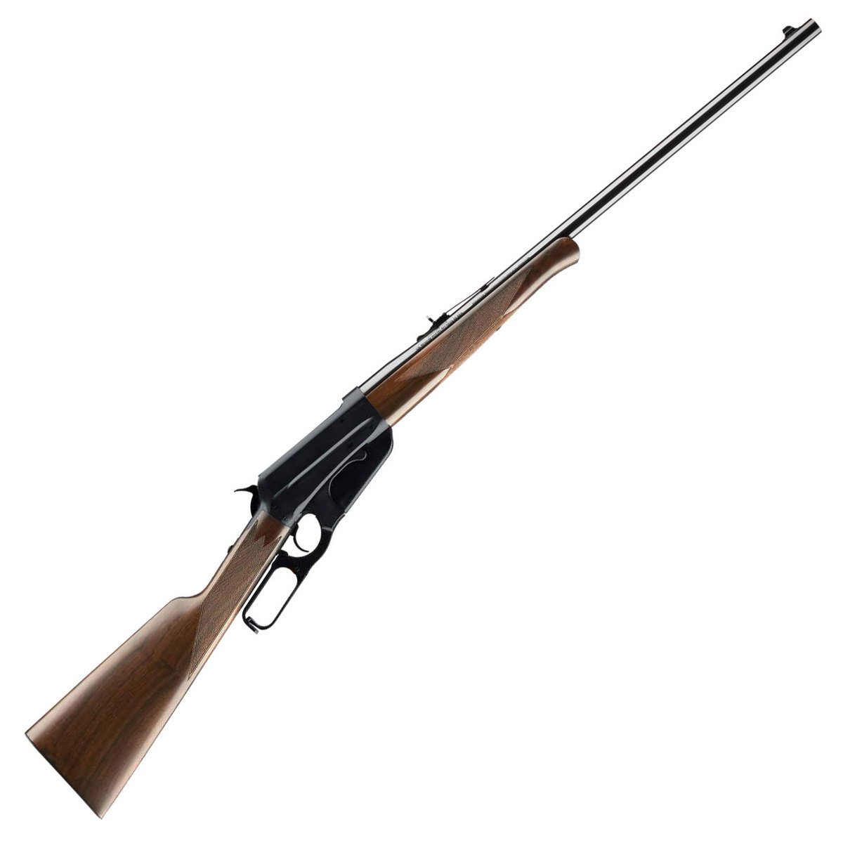 Winchester Model 1895 Blued/Walnut Lever Action Rifle – 30-06 Springfield – The Model 1895 has a scalloped receiver, two-piece lever, Schnabel forearm and straight grip stock. The barrel and receiver have been polished to give it a glossy, deep black/blue appearance. The walnut stock and forearm have been precisely fit and finely checkered.
