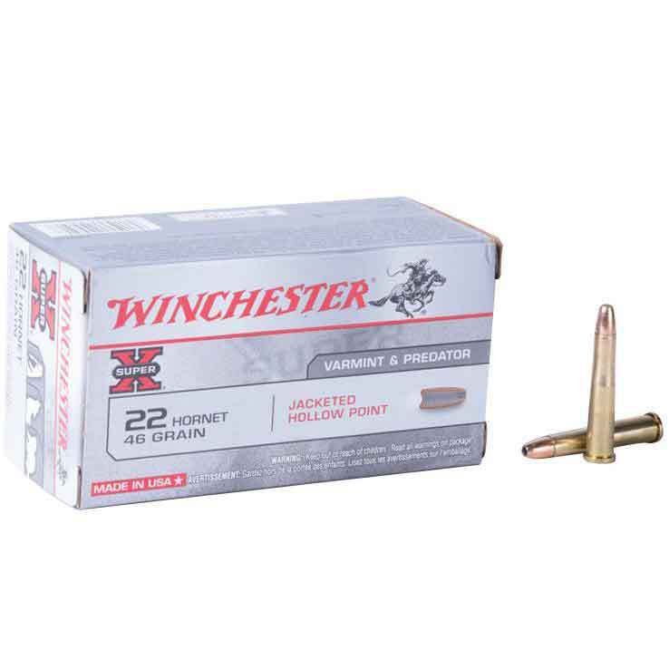 Winchester Super X 22 Hornet 46gr JHP Rifle Ammo – 50 Rounds – Weight rearward design enhances bullet accuracy. Features include ultra-high velocity, pinpoint accuracy and explosive fragmentation.