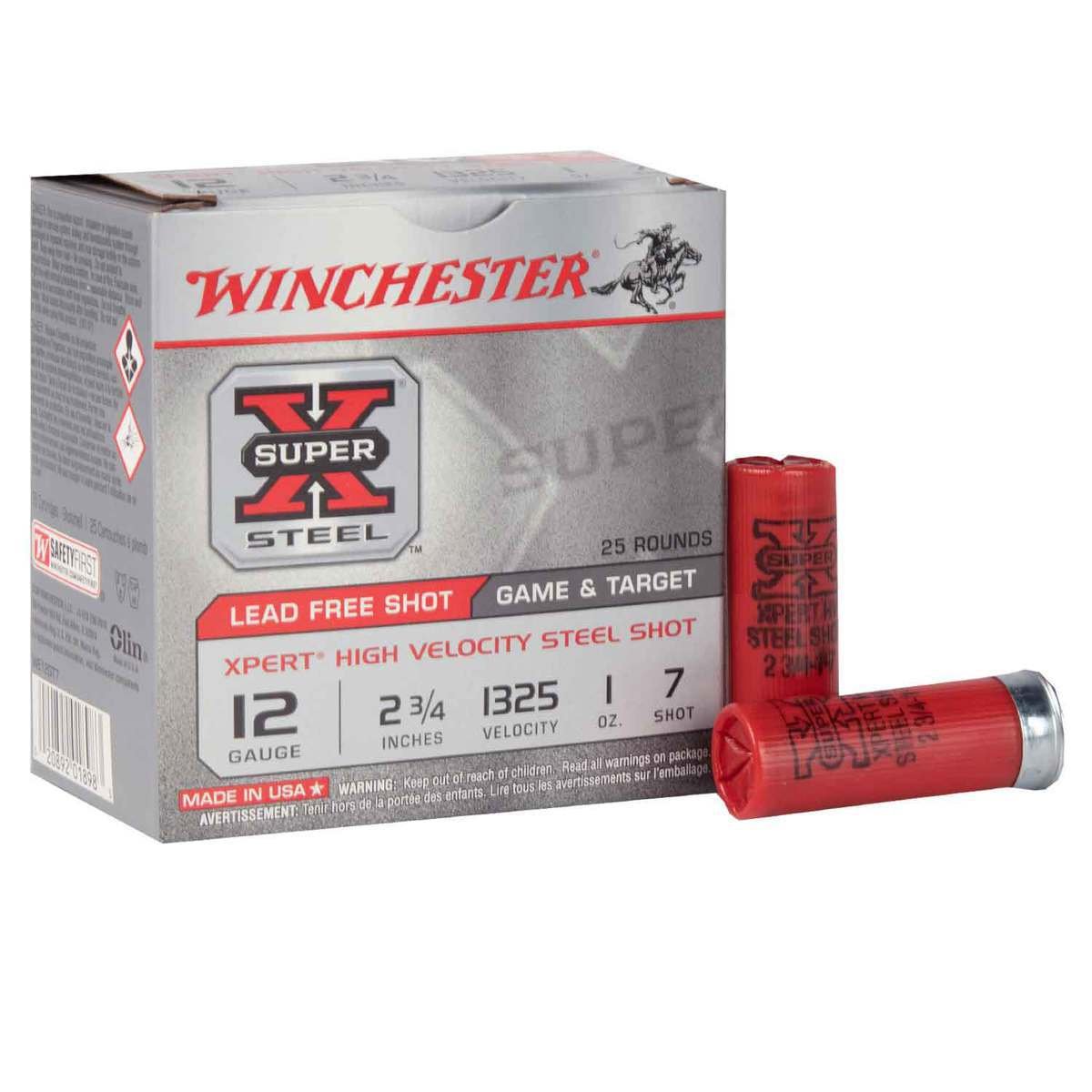 Winchester Super X Xpert High Velocity 12ga 2-3/4in #7 1oz Shotshells – 25 Rounds- Super-X Game & Target ammunition has provided exceptional quality and outstanding performance for all types of hunters and shooters who rely on its time-proven dependability backed by legendary excellence. Thicker wad segments for increased barrel protection and high performance, corrosion resistant steel shot. Meets federal and state lead free projectile regulations.