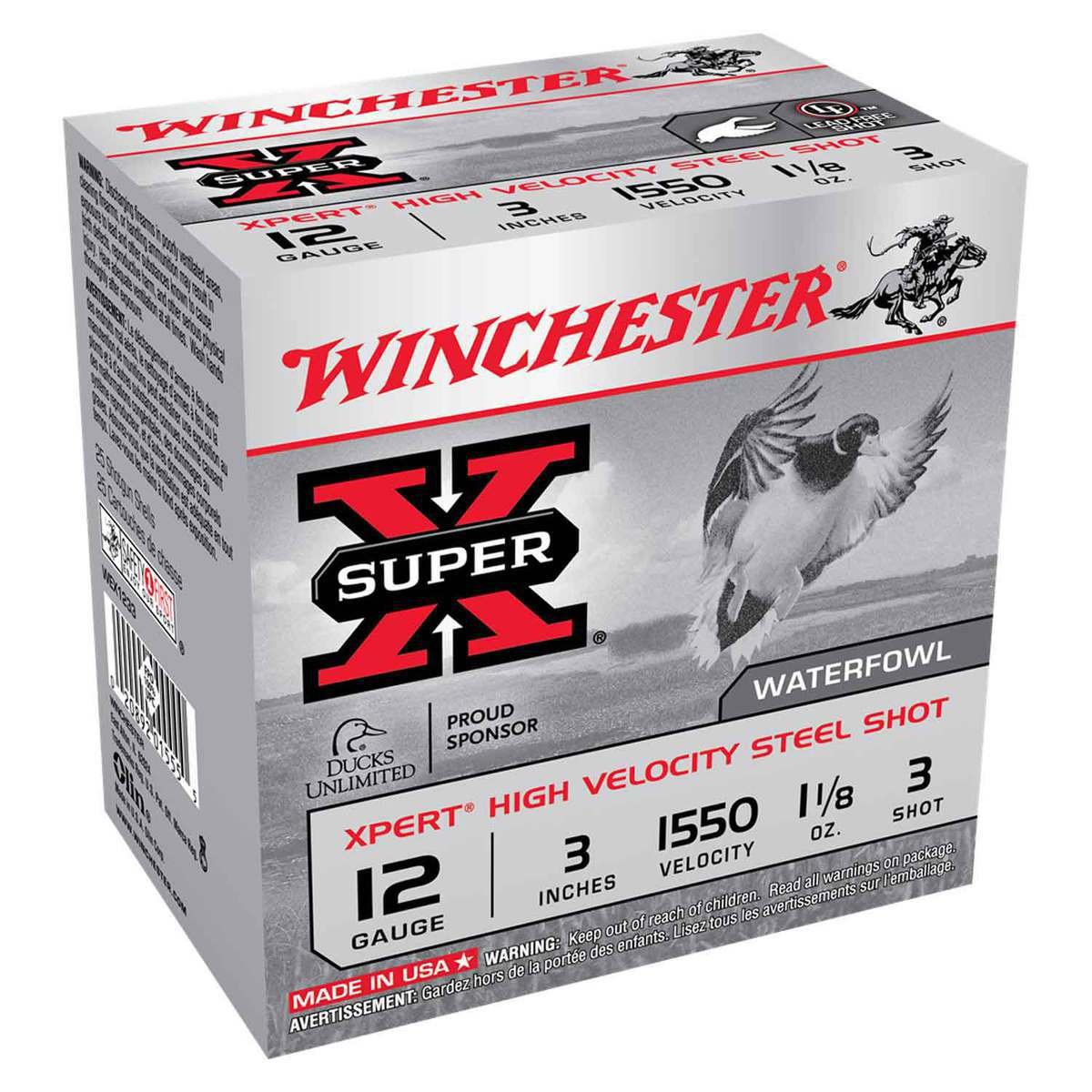 Winchester Super-X Xpert High Velocity Steel Shot 12 Gauge 3in #3 1-1/8oz Waterfowl Shotshells – 25 Rounds – Since 1922, Super-X ammunition has provided exceptional quality and outstanding performance for all types of hunters and shooters who rely on its time-proven dependability. These High Velocity Steel Shot shotshells offer more energy per pellet for increased range and shorter leads, resulting in greater terminal performance.