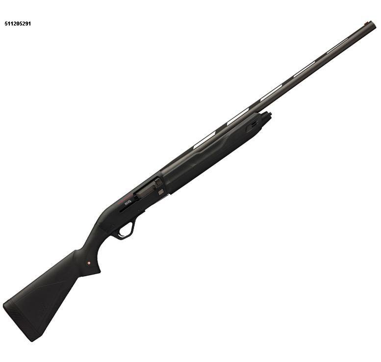 Winchester SX4 Black Synthetic Shotgun – This shotgun features Fiber Optic Bead sights, a total capacity of 5 shells, Invector-Plus Flush chokes, a Chrome-Lined barrel, an Aluminum Alloy receiver, and a matte finish. The barrel measures 26 inches long, with an overall length at 47 inches. It weighs in at 7 pounds. And the length of pull is 14 1/4 inches.