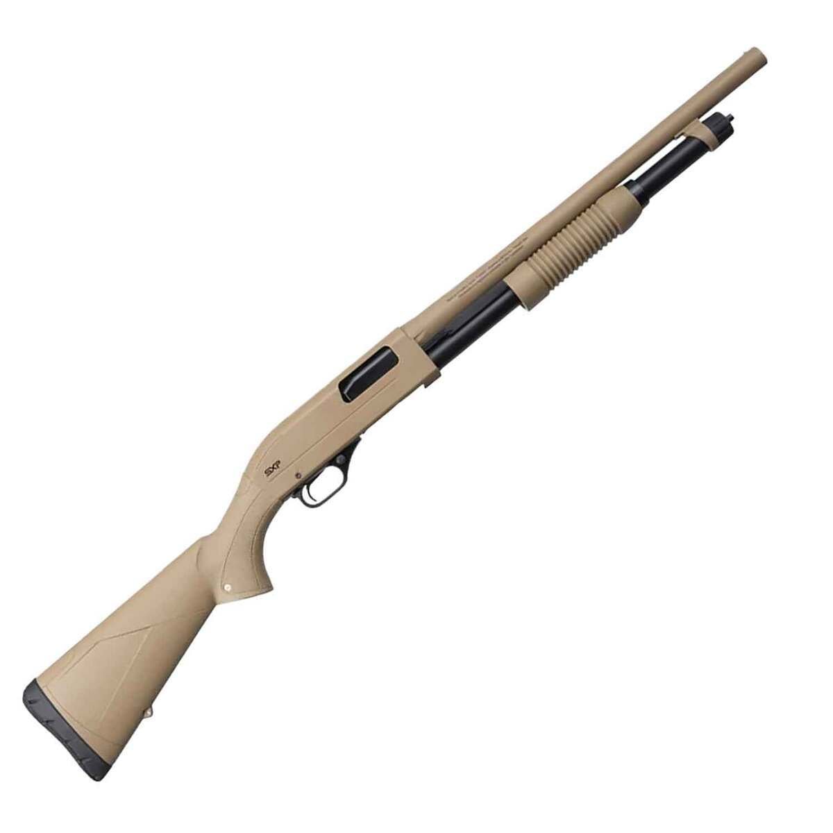 Winchester SXP Defender Flat Dark Earth 12 Gauge 3in Pump Shotgun – 18in – The SXP Defender from Winchester is a compact and versatile shotgun for any facet of defensive use. The shotgun uses the classic and reliable pump action to operate and has some other features that assist in keeping this gun running. one of these features is the use of chrome plating on the inside of the chamber and barrel for improved reliability and an added level of longevity. The barrel comes with a cylinder bore for optimal use with buckshot or slugs. The shot gun is also given a Cerakote coating to further protect the shotgun no matter where you are. Making this shot gun an excellent option for home defense or bear protection while out in the wild. So get more then a regular defense shotgun with the Winchester Defender.