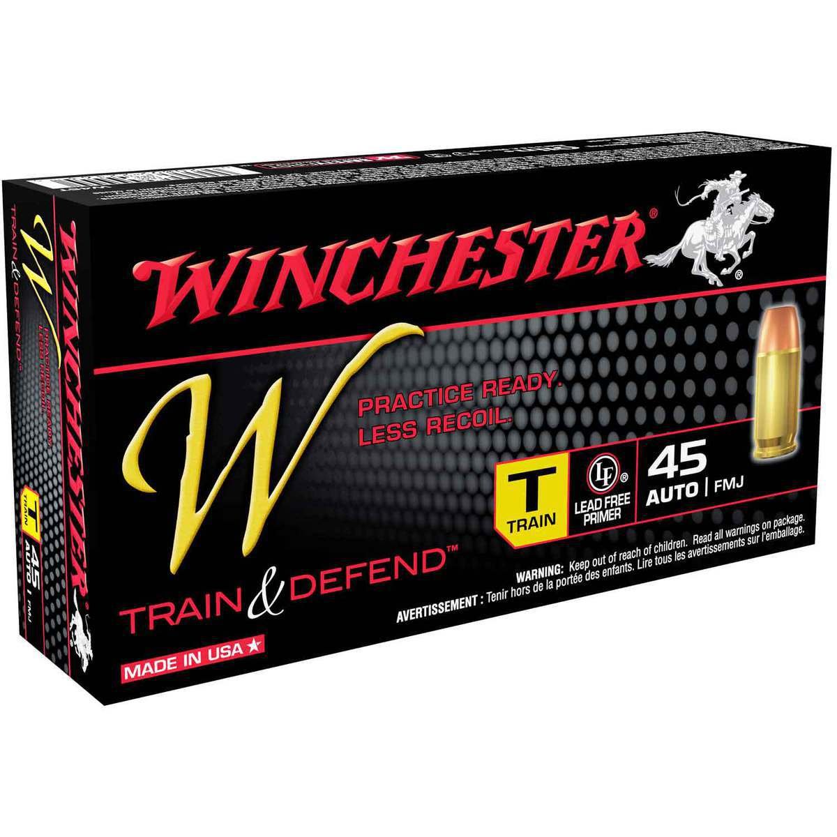 Winchester Train And Defend 45 Auto (ACP) 230gr FMJ Handgun Ammo – The W Train & Defend ammunition System is a straight-forward solution for new shooters interested in training to become more proficient with their personal defense ammunition. This ballistically-matched ammunition pairs range-ready TRAIN (T) rounds with threat-stopping, technology-driven DEFEND (D) rounds, each designed for less recoil.